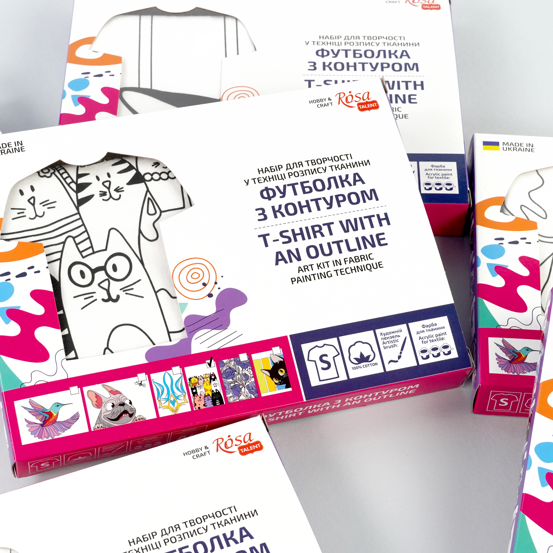 Create, wear, and share your art with the Set: T-Shirt Painting "Cats" by ROSA Talent. Order yours today and start your journey into fabric painting!